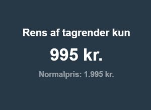 Vores samarbejdspartner Jydsk Tagteknik tilbyder i øjeblikket tagrenderensning til 995 kr. (normalpris: 1.995 kr).