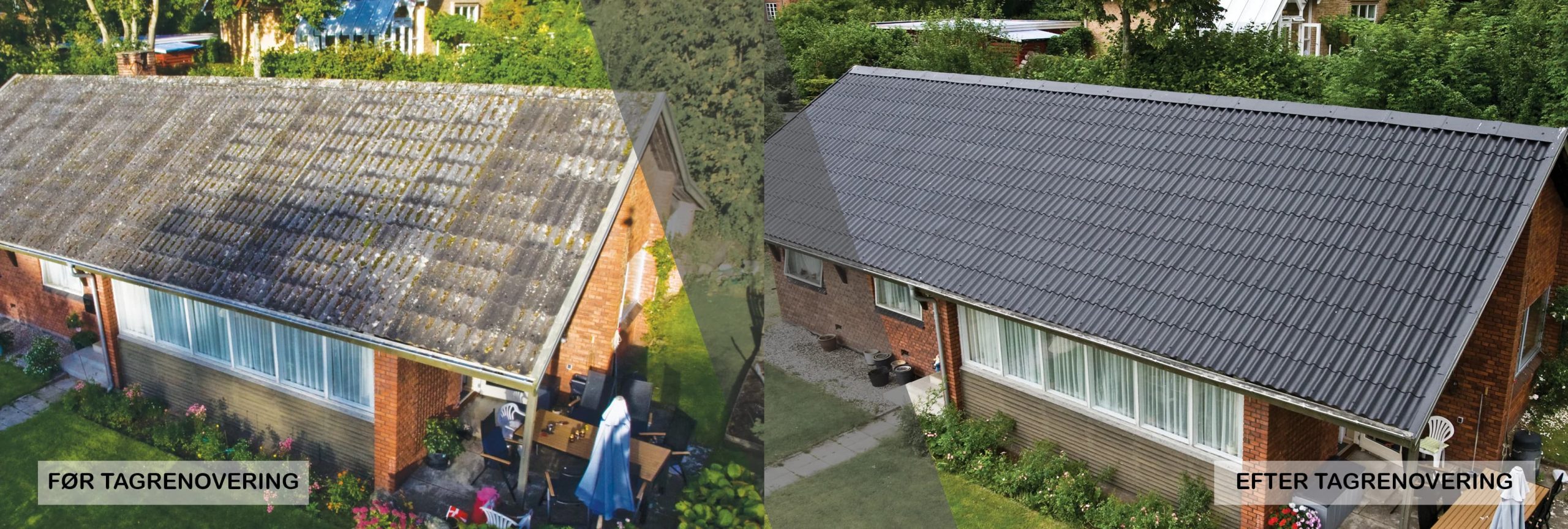 Behandlingen anvender miljøgodkendte midler og følger retningslinjer for opsamling eller bortledning af spildevand for at beskytte miljøet. Du vil typisk kunne se tydelige forandringer på dit tag 2-3 uger efter.